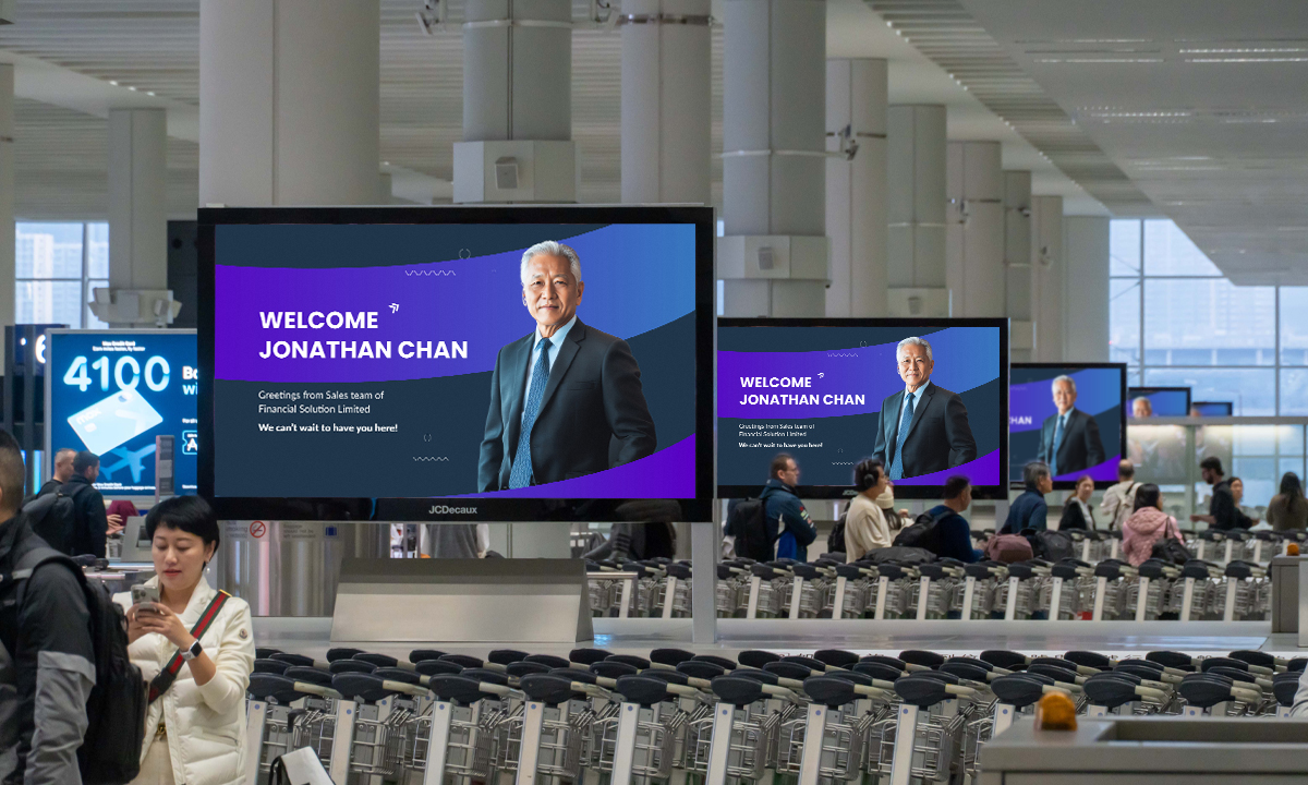 A series of 16 digital screens for high exposure at the baggage reclaim area. High dwell time and exposure